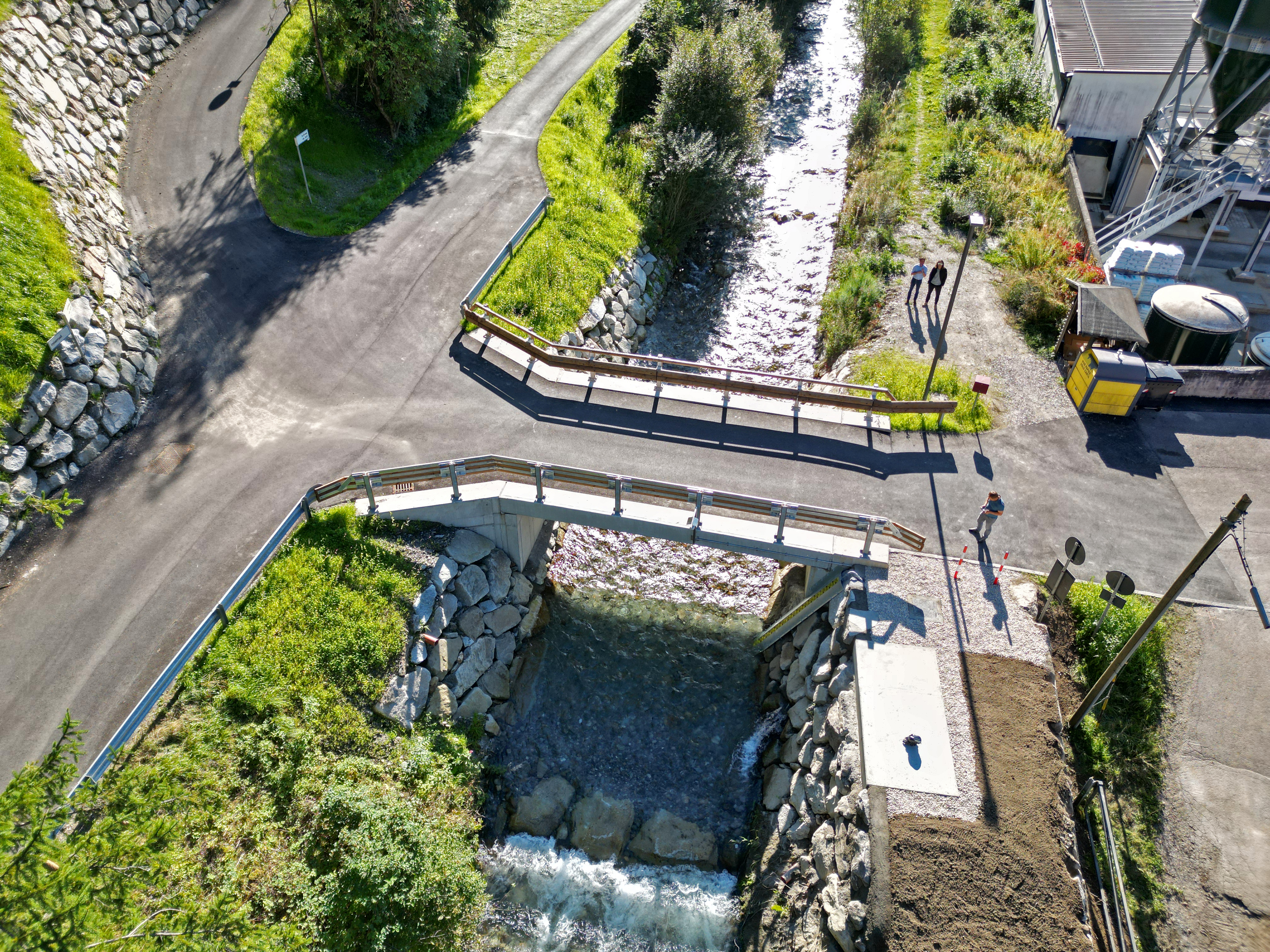 Die Baustelle befindet sich in der Handwerkerzone in der Ortschaft Gasteig in der Gemeinde Ratschings. Die bestehende Brücke wurde abgebrochen und samt Widerlager neu errichtet. Die Anschlussbereiche wurden neu projektiert.