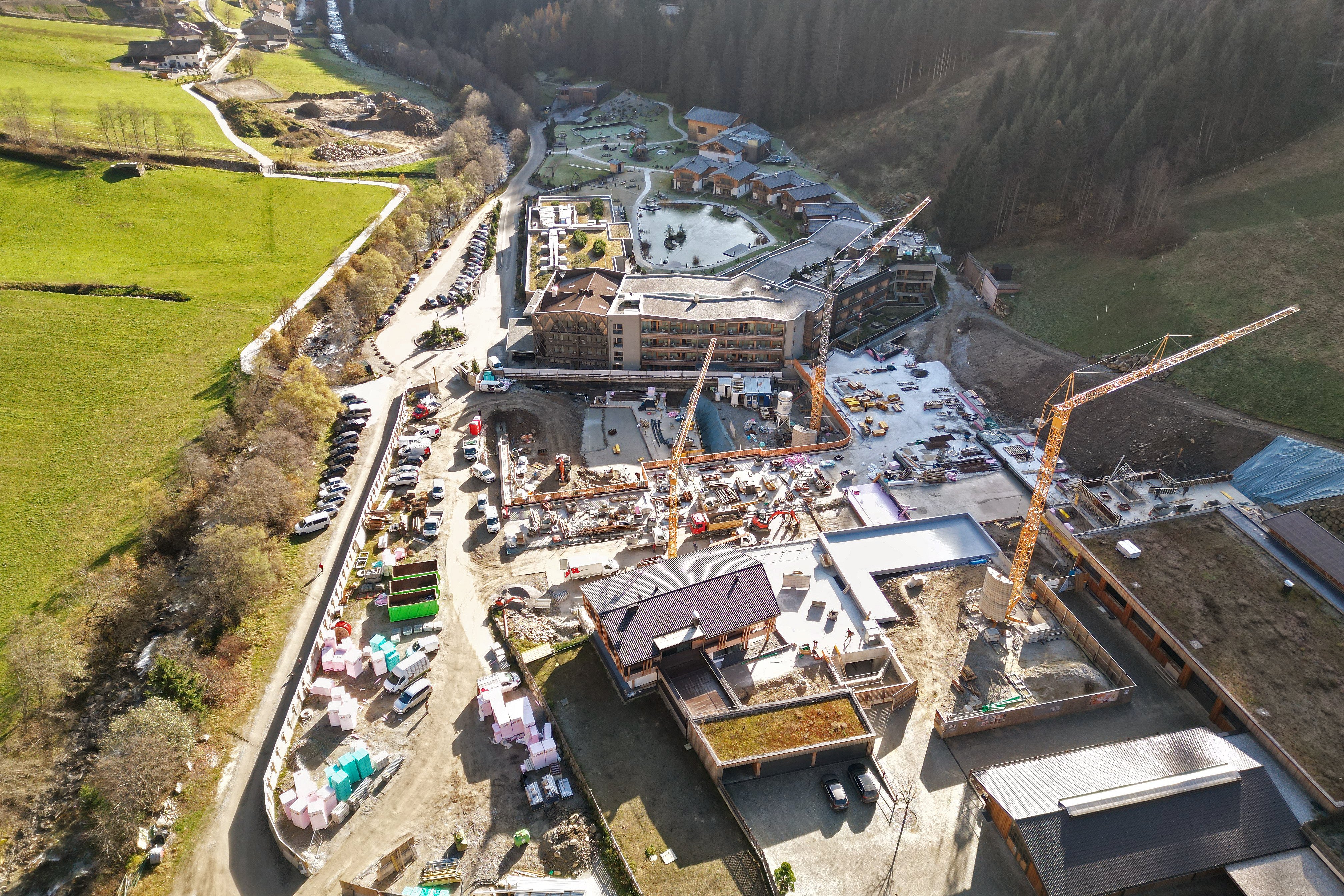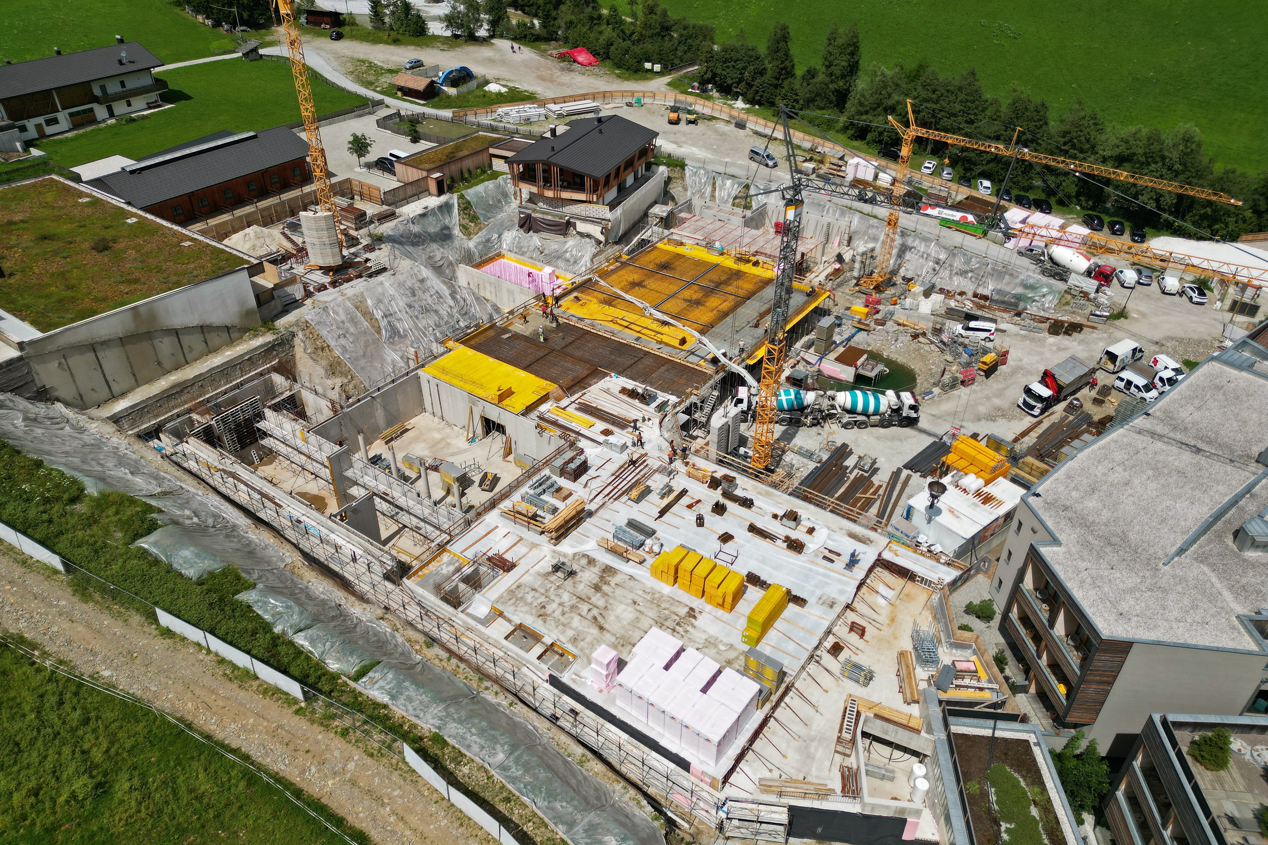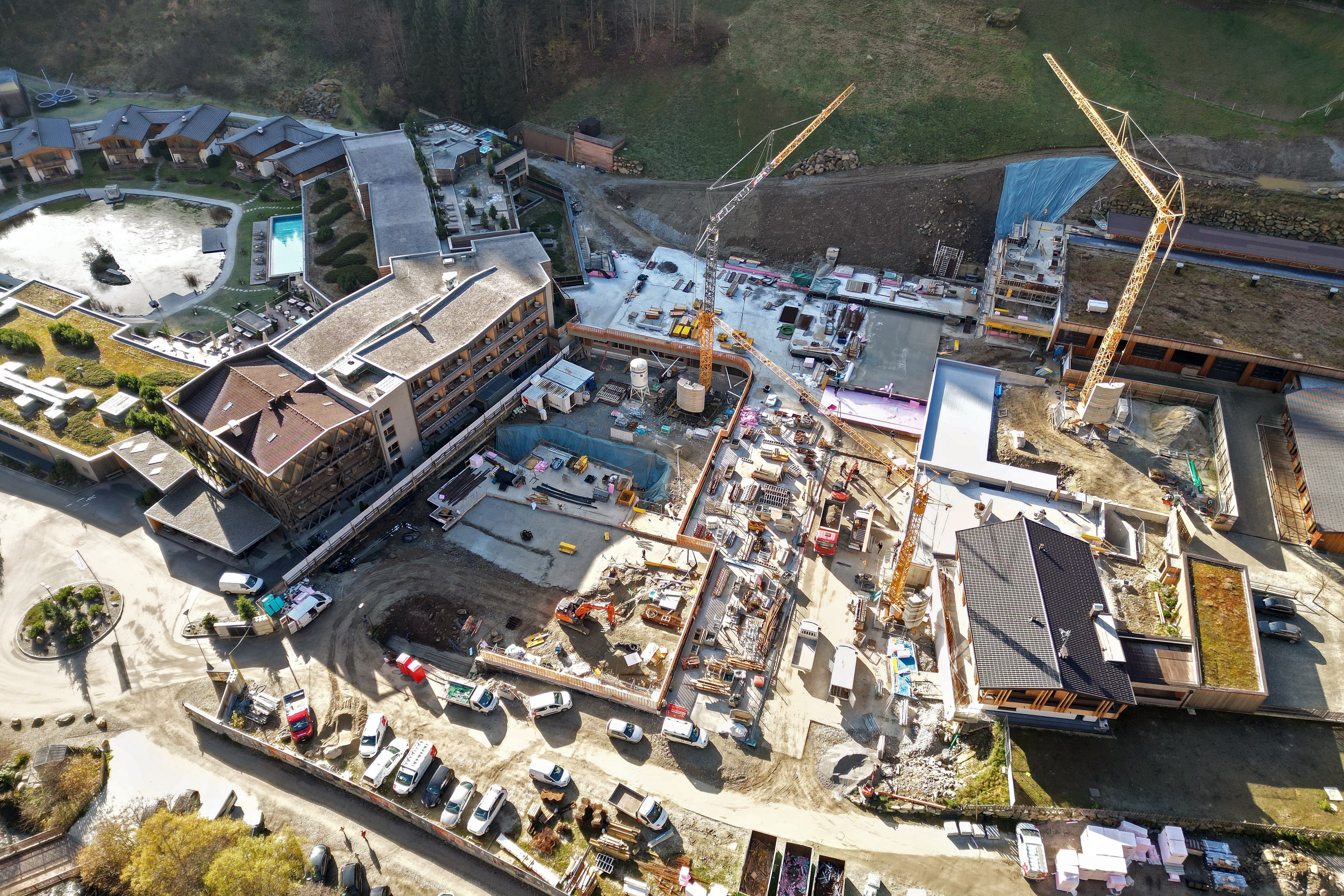 L’ampliamento dell’Hotel Feuerstein ha richiesto diversi interventi edilizi. Le opere hanno incluso la costruzione di un garage interrato, l’inserimento di locali tecnici e la realizzazione di piscine.