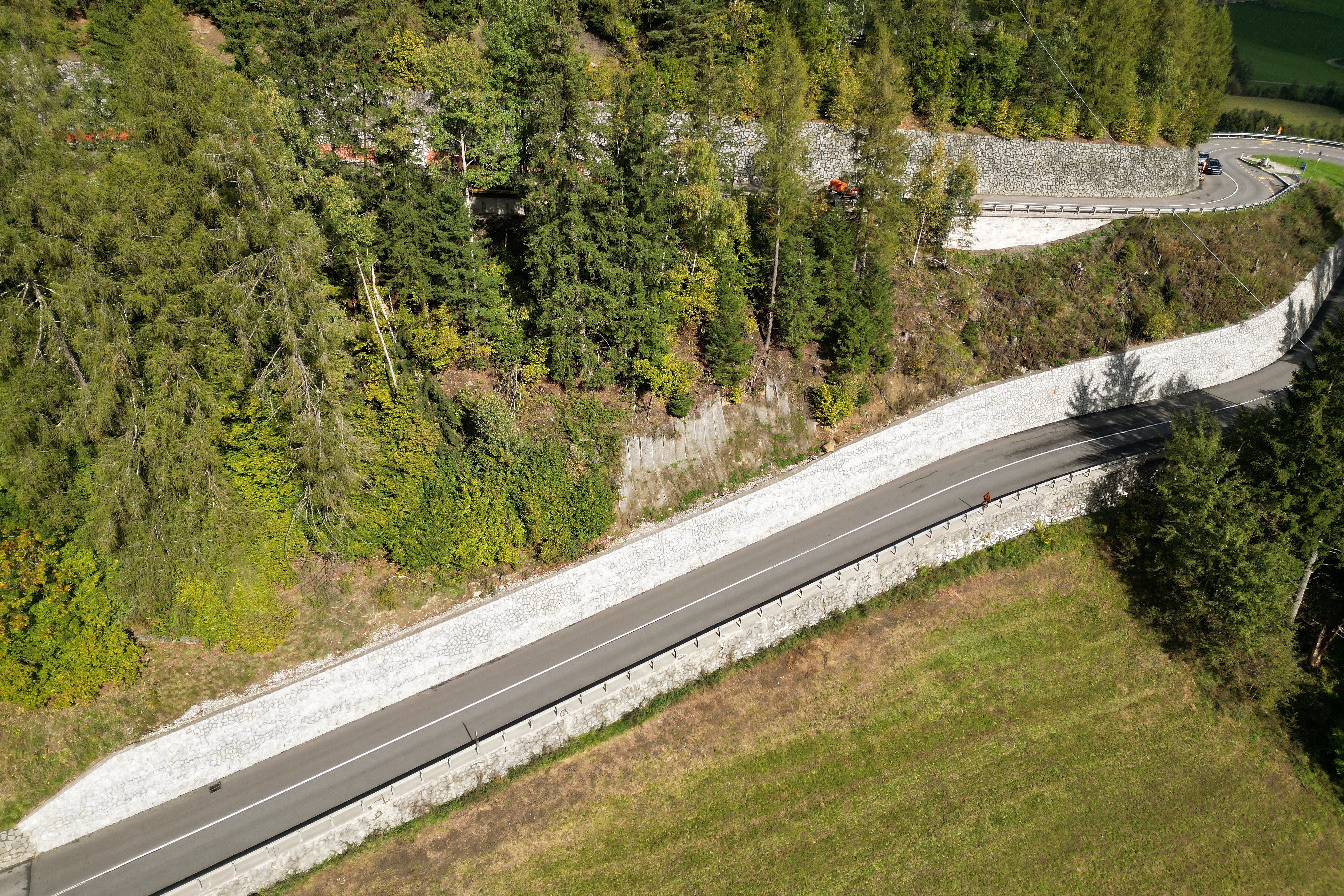Im Rahmen des Projekts wurde die Sanierung der tal- und bergseitigen Stützmauern entlang der Landesstraße LS38 in Richtung Ratschings durchgeführt. Zusätzlich war ein Bereich von Hangrutschungen betroffen und musste entsprechend gesichert und stabilisiert werden.